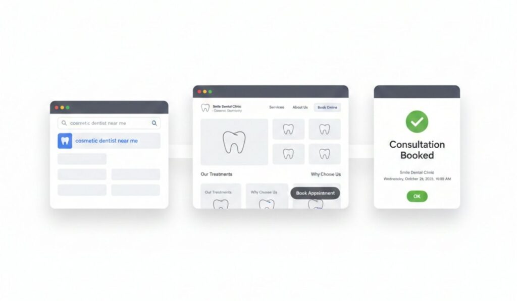 While most clinics rely on guesswork, we capture patients actively searching for dental cosmetic procedures, guide them to book, and track every step — so your schedule fills predictably.